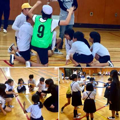 今年は、たてわり班で力を合わせてゲームをすることを、続けています。おにごっこやドッジボールではなく、みんなが楽しめることをめあてにしています。