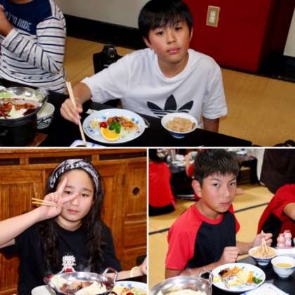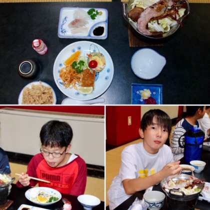 「海月」の自慢は、食事のおもてなしです。修学旅行には、贅沢な伊勢えびが出ます。みんな大満足でした。