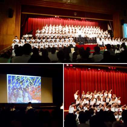 木津中学校下の敷津小、難波元町小、大国保育園、グローバルキッズ、大国小が集まって、人権文化祭を開催しました。それぞれが考えた出し物を通して、つながりを深めていくことができました。