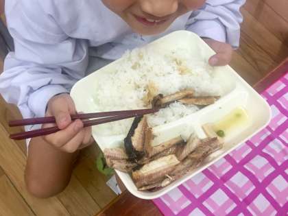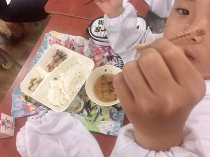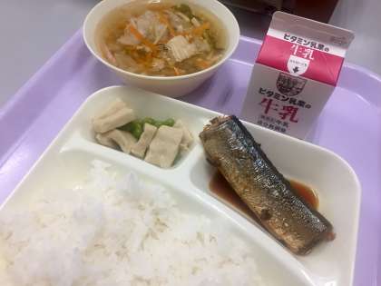 今日の給食は、さんまのさんしょう焼き、すまし汁、高野どうふの煮物でした。魚好きな子が多い2年生では、うれしそうでした。