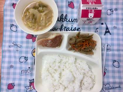 今日の給食は、赤魚の醤油だれかけ、みそ汁、きんぴらごぼうでした。赤魚もきんぴらもご飯がすすみます。まさに食欲の秋でした。