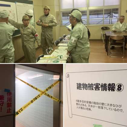 子どもたちが、炊き出しご飯を食べたり、防災物資を見学したりしている間、対策本部では、地域のみなさんが忙しく動いておられました。このような動きのおかげで、災害時にみんなの命は守られていきます。