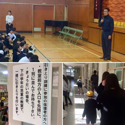 榊区長も、早朝よりご参加いただきました。区役所や社会福祉協議会、消防署などいろいろな機関のおかげで、たいへん実りの多い訓練にすることができました。本当にありがとうございました。最後は、災害時に児童を保護者に引き渡す訓練を行いました。
