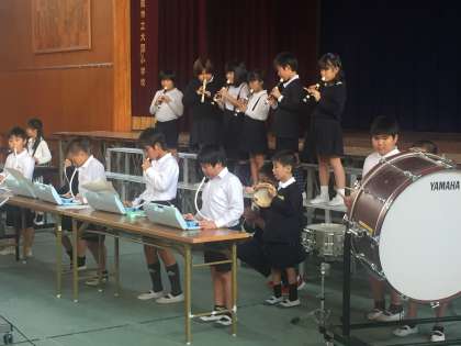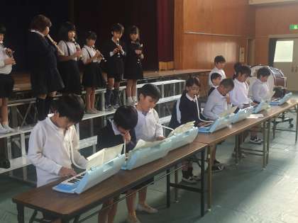 本校では、近年、音楽発表会や作品展といった行事がありませんでした。だけど、音楽や絵画、工作などを通して養われる豊かなものはあります。それを、多くの人に見ていただきたいということで、今年度から取り組んでいます。3年生は、「パプリカ」の合奏を練習しています。