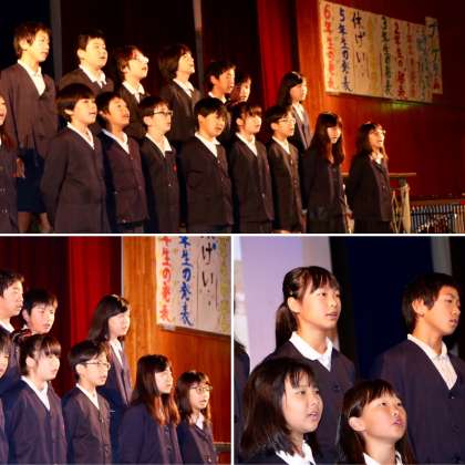 6年生は、小学校生活最後の年を振り返りながらの演奏でした。最後にうたった「空も飛べるはず」は、なつかしいドラマをみているような気になりました。
