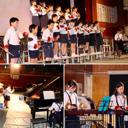 4年生は、ディズニーワールドへの誘いでした。かわいらしい蝶ネクタイと腕飾りが素敵でした。演奏もしっかりとしていて、会場が華やかになりました。