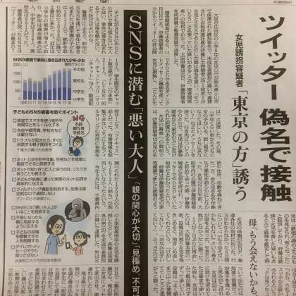 大阪市内の小学校に通う女子児童が、保護されたのは400kmも離れた栃木県内でした。自ら交番に駆け込まなければ、何年間も行方がわからない失踪事件になったかもしれません。SNSに潜む恐怖を感じます。本校では、かねてより子どもたちのスマホには、フィルタリングの利用を呼びかけるなど、保護者の管理をお願いしてきました。SNSには、子どもを狙っている悪意の大人がいます。また、子どもたち同士のトラブルもあとを絶ちません。子どもにスマホ・携帯を持たせる以上は、そのことを十分に認識していただきたいと思います。