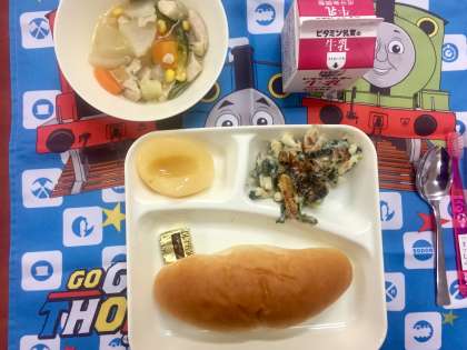 今日の給食は、スープ煮、ほうれん草のグラタン、白桃でした。11月の給食も今日で終わります。2学期もあと一か月を残すのみとなりました。