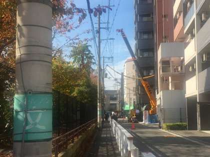 大国南公園の北側道路においてビルの建築工事が行われています。通学時間には、工事をしていないようですが、下校時や下校後においては、工事車両の出入りやクレーンによる工事が行われている可能性があります。つきましては、学校として以下の指導を行いました。