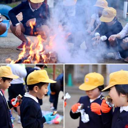 寒くなってきた朝、2年生が1年生を招待して、焼きたてのおいもを食べました。ほくほくした焼いもに、みんな大喜びでした。