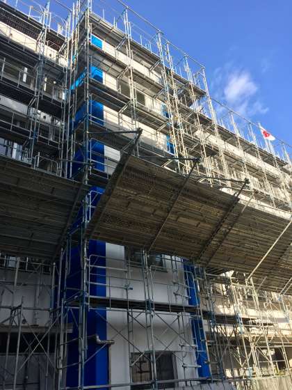 足場の解体が始まりました