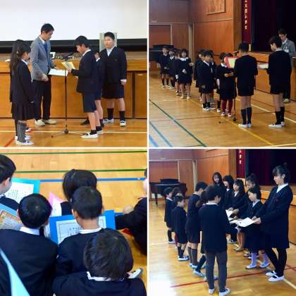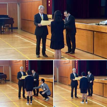 長かった2学期も終業式を迎えました。租税協会のみなさんから、書道コンクールの表彰状をいただいた他、給食や読書など、さまざまながんばりに対して、表彰状をもらいました。みんな、それぞれにがんばったことは違っても、2学期を無事で迎えることができたことが、一番のできごとです。2020年も、幸せな一年でありますように。
