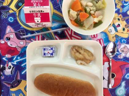 3学期の給食が始まりました。今日の給食は、アジのレモンマリネ、てぼ豆のスープ煮、固形チーズでした。久しぶりに友達と一緒に食べる給食は、格別においしかったようでみんな嬉しそうでした。