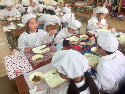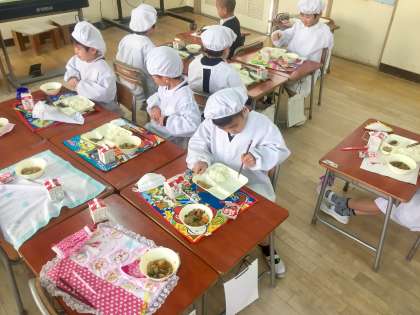 今日の給食は、いわしの生姜醬油がけ、含め煮、いり大豆でした。昨日は、節分でしたから、給食も季節の献立になりました。恵方巻だけでない、節分を味わえたのではないかと思います。