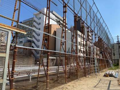 大国小学校グラウンド、東側にあるフェンスの上部が老朽化していましたので、改修工事を行っています。