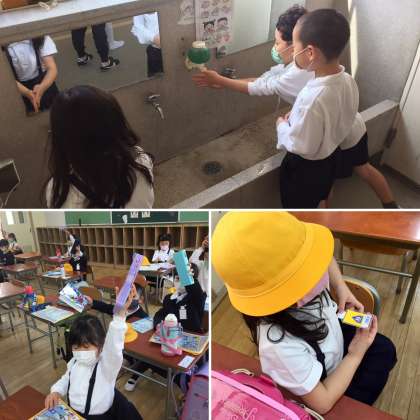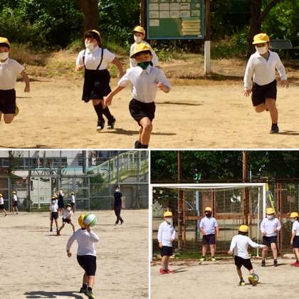 教室は、すべての窓とドアを開放し、手洗い・消毒と密着をふせぐ距離を確保しました。その上で、外に出てかけ回る時間もつくりました。