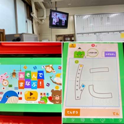 オンラインでの学習や、タブレットを使った学習ができるように準備してきました。1年生については、今週中にタブレットを1台ずつ配布いたします。たくさんのアプリケーションが入っていますから、興味のあるものから遊びながら学習を進めてください。