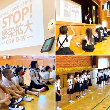 また、1年生と上級生が出会う対面式もやりました。ペッパーも久しぶりに登場して、クイズや感染症予防を教えてくれました。