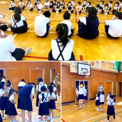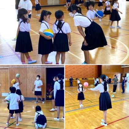 1年生と6年生が、いっしょに遊びました。おたがいに、まだ体をふれあうことを制限しているので、例年のようにおんぶなどはできません。それでも、しだいに慣れて、楽しい時間になりました。