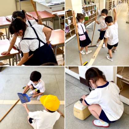 そうじは、低学年の子どもたちほど熱心にやります。6年生がいっしょにそうじをやっていますが、はるかに1年生の方がまじめです。高学年にとっては、いい刺激になっています。