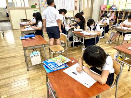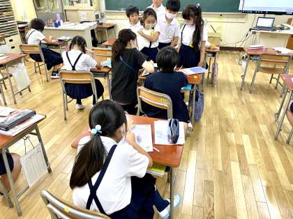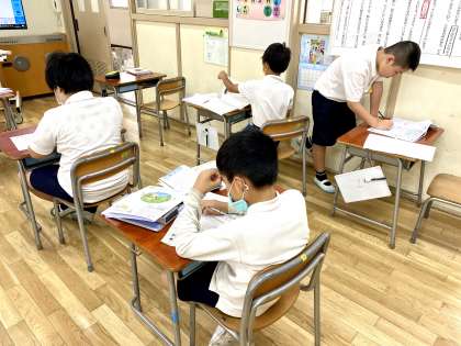 一斉に前をむいてすわり、先生の説明を聞いて答える。いわゆる以前からの学習風景が変わりつつあります。同じ課題を、みんなでするということもありますが、それぞれの学習の進み具合によって、ちがった課題に取り組むこともあります。