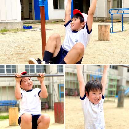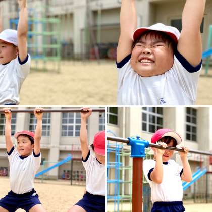 2年生が鉄棒運動をしていました。鉄棒にぶら下がるだけですが、きつそうな子もいました。握力やうでの力は、運動できたえていく必要があります。