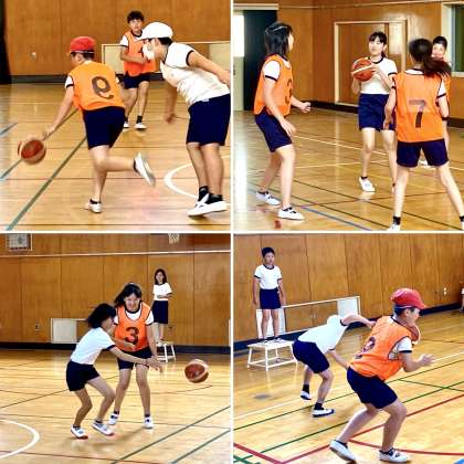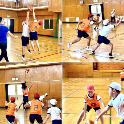 6年生のポートボール。みんなで楽しむことがめあてでした。体育だからといって、技をみがいたり、体力をつけたりだけが目的ではありません。スポーツを好きになり、楽しむことを身につけたいですね。