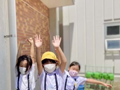 運動場で遊んだ後、教室にもどるまではミストシャワー。あつくなった体を冷たい風が、ひやしてくれます。