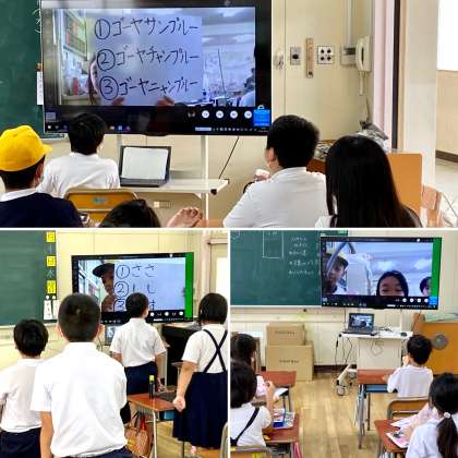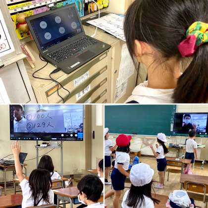 今日は、Teamsを使って、全校集会にチャレンジしました。職員室から送信して、各教室で受信しました。簡単なゲームでしたが、結果は良好でした。これからも、いろいろな場面でオンラインを活用していきます。