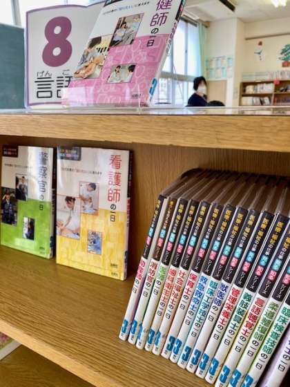 本を読むことは、自分の知らない世界を旅することです。マンガ、絵本に始まって、図書館にはたくさんの本があります。今、さまざまな仕事を紹介した本もそろえています。読書ノートがいっぱいになるぐらい、本を読んで将来のゆめを広げてほしいです。