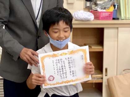 本校では読書ノートを活用しています。50冊、100冊と読んだ本をノートに記録していきます。決まった冊数を読んだ子には表彰状を贈ります。そして、朝日新聞にも名前を載せていただくことになっています。みんな、がんばって本を読みましょう。