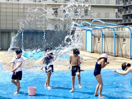 プールに入れなかった学年の子たちは、水遊びをします。生活科の学習でもあります。最高の笑顔でした。