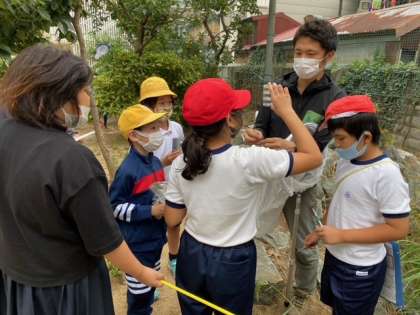 10月5日(月)の3・4時間目、大阪市環境局の方々にお越しいただき、6月に引き続き、4年生の子どもたちを対象に、生き物さがしの授業を行いました。