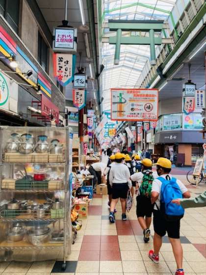 10/14(水)、3年生の子どもたちが、天神橋筋商店街へ社会見学に行きました。商店街とスーパーマーケット・コンビニエンスストアの違い、どんなお店があるか、品物はどのように置かれているかなどについて、たくさん調べることができました。