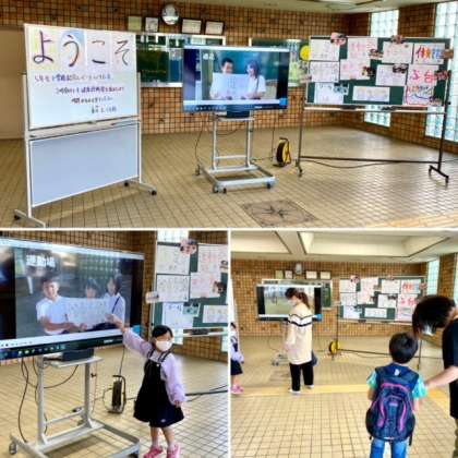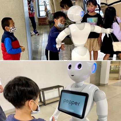 来春に入学してくる子どもたちの健康状態をしらべる健康診断を行いました。みんな元気にやってきました。5年生がつくったお迎えのビデオを見て、ペッパーとも仲良しになりました。来年度は、みんな1年生です。