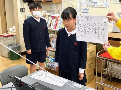 児童集会では、委員会の子どもたちが、「赤ちゃんのひみつ」をクイズにしてくれました。「赤ちゃんは、外の音を聞いている?」など、とてもためになる内容でした。