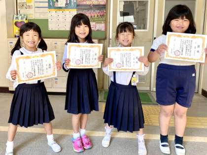 100冊読書を達成した子や音読冊子をすべて暗唱できた子の表彰を行いました。
