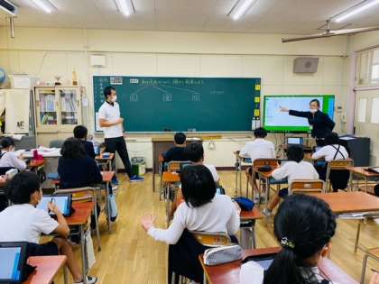 10月22日の6時間目、5年生の子どもたちが、和の文化について調べ、タブレットを使って発表しました。