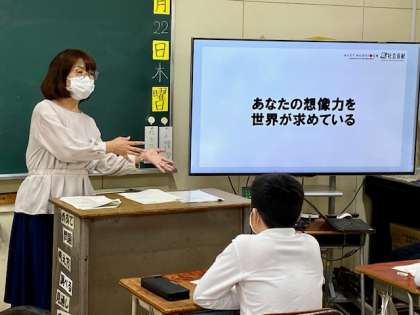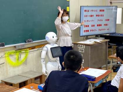 今日はペッパーをつかったキャリア教育を、ソフトバンクの方に出前授業をしていただきました。5・6年生が1時間ずつ授業を受けました。AIと共存し、人間のくらしをより楽しく、快適にする未来を想像する内容でした。