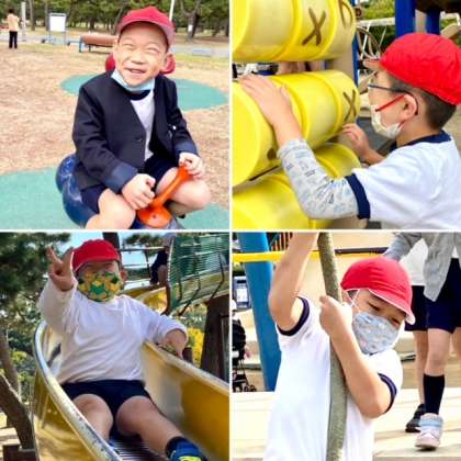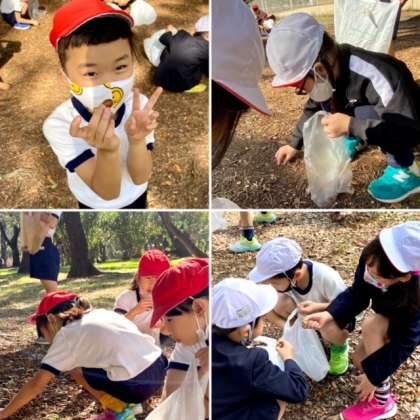 遊具で遊び、どんぐりや松ぼっくりを拾い、秋を思い切り楽しみました。