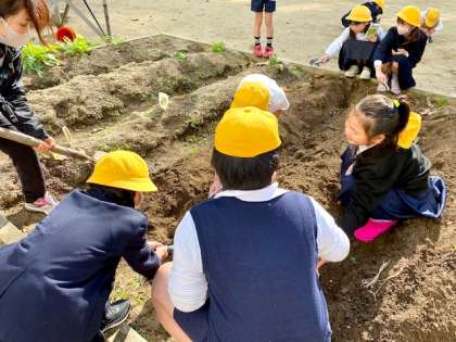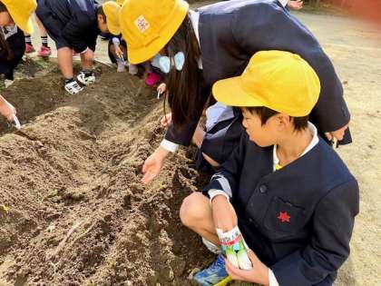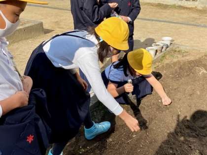 3年生が、大根やほうれん草の種を植えていました。冬にしっかりと芽を出すのか、楽しみですね。