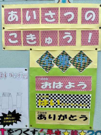今週は、あいさつ週間です。みんなでさわやかなあいさつができるように、全集中で取り組みます。
