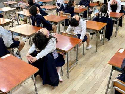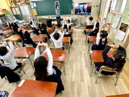 冬場になると背中が姿勢が前かがみになりがちです。学校では普段から姿勢体操を続けています。これも、あいさつといっしょに強化週間にしています。