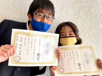 兄妹で達成! 公開日 2020/12/03 更新日 2020/12/03 お知らせ 音読の全文暗唱に兄妹で取り組みました。とてもすてきな笑顔です。子どもは無限に伸びていきます。 みんなで未来を広げていきましょう。 いいね(0)