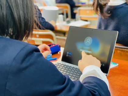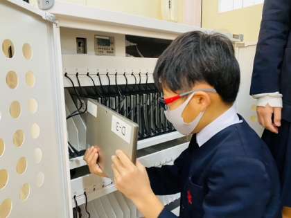 大国小学校では、一人一台学習者用端末が整備され、5年生の児童が、今日の1時間目に早速使いました。