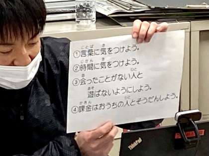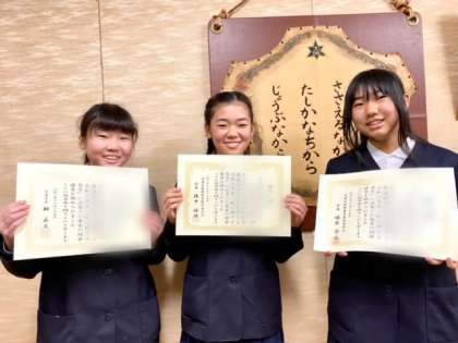 終業式では、年末年始の生活指導とともに、優秀な書写の作品をのこしてくれた3人に表彰状を渡しました。