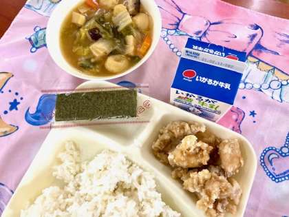 今日は、からあげ 公開日 2021/02/05 更新日 2021/02/05 お知らせ 今日の給食は、鶏肉のからあげ、まる天と野菜のうま煮、焼きのりでした。まる天を不思議そうにしながらも、おいしいと食べていました。 いいね(0)