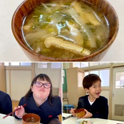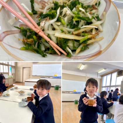 2年生が自分たちで育てた大根をつかった味噌汁や漬物を食べました。シンプルな料理ですが、本当にうれしそうでした。