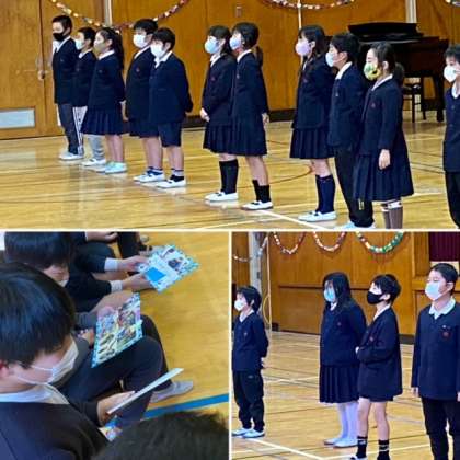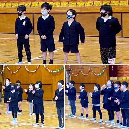 今日は、全校児童による卒業を祝う会でした。今年は何かを発表する機会がなく、子どもたちは、朝からドキドキしていました。本番では、6年生への感謝の気持ちをしっかりと伝えることができました。