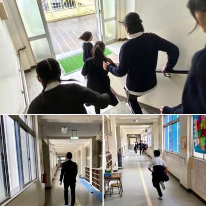 三人のハンターが追ってきます。逃走者は、ミッションをクリアして、閉じ込められた友だちの救出に向かいます。ミッションは校舎のどこかに隠れています。